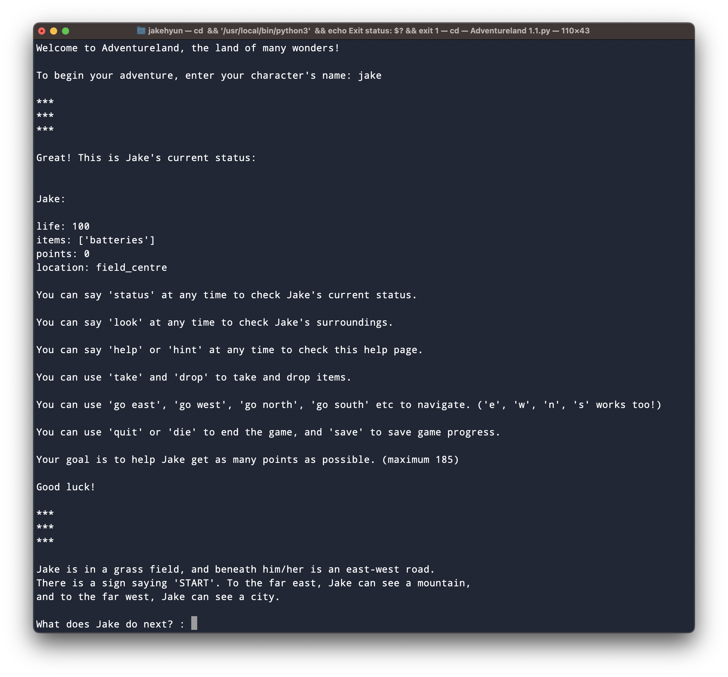 객체지향도 모르던 시절인데, 결국 3개월동안 if/else만 3000 라인을 chaining해서 텍스트 기반 어드벤처 게임, Adventureland를 만들어내고야 만다(모든 위치, 모든 명령어의 조합을 다 if/else로 처리했다). Dunnet처럼 플레이어의 환경에 대한 설명이 줄글로 나오면, 명령어로 입력을 넣는 방식의 퍼즐 게임이다.
